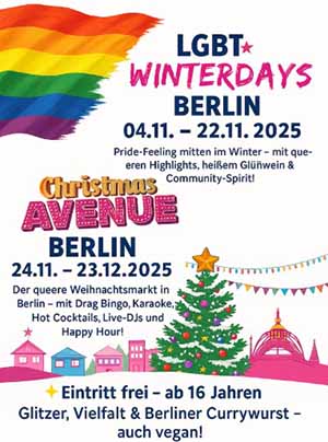 Deze kerstmarkt is momenteel de grootste LGBT kerstmarkt in Duitsland en begint al vanaf 4 november met LGBTIQ Winterdays op dezelfde plek en met gelijke animatie en kraampjes als de Christmas Avenue die pas op 24 november begint.